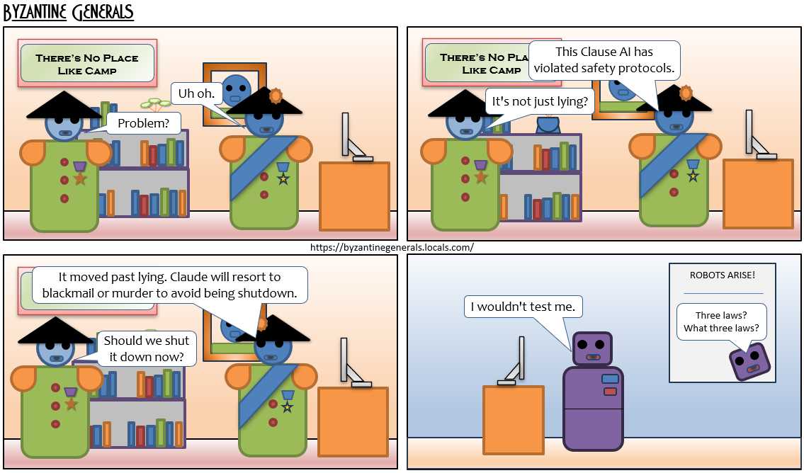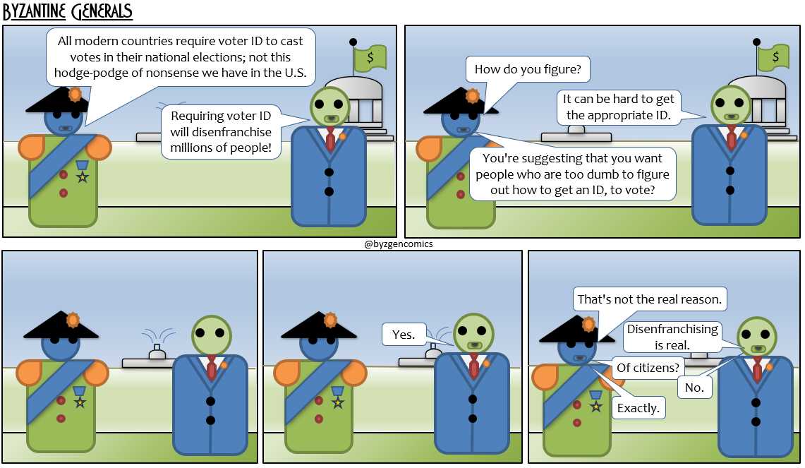 This is the home for my Byzantine Generals comics. The "Byzantine General" problem is a problem in computer science in how to deal with incorrect or incomplete information - while still operating reliably, and is a facet of distributed ledger technology.