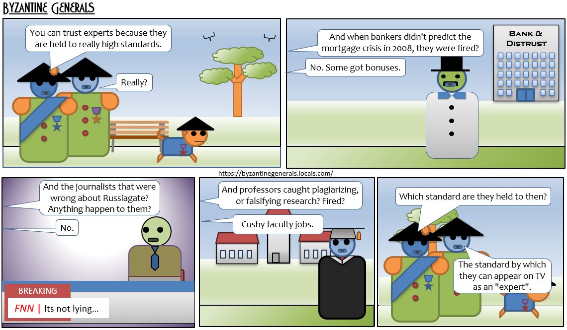 This is the home for my Byzantine Generals comics. The "Byzantine General" problem is a problem in computer science in how to deal with incorrect or incomplete information - while still operating reliably, and is a facet of distributed ledger technology.