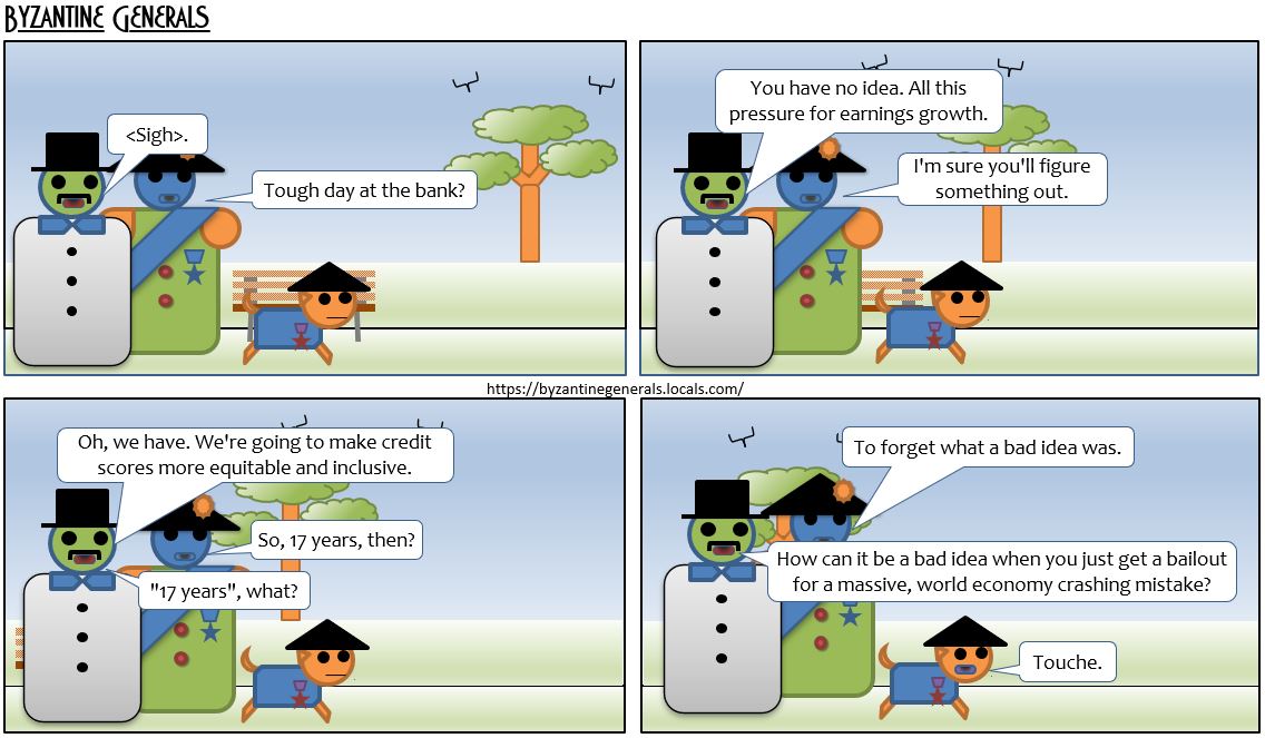 This is the home for my Byzantine Generals comics. The "Byzantine General" problem is a problem in computer science in how to deal with incorrect or incomplete information - while still operating reliably, and is a facet of distributed ledger technology.